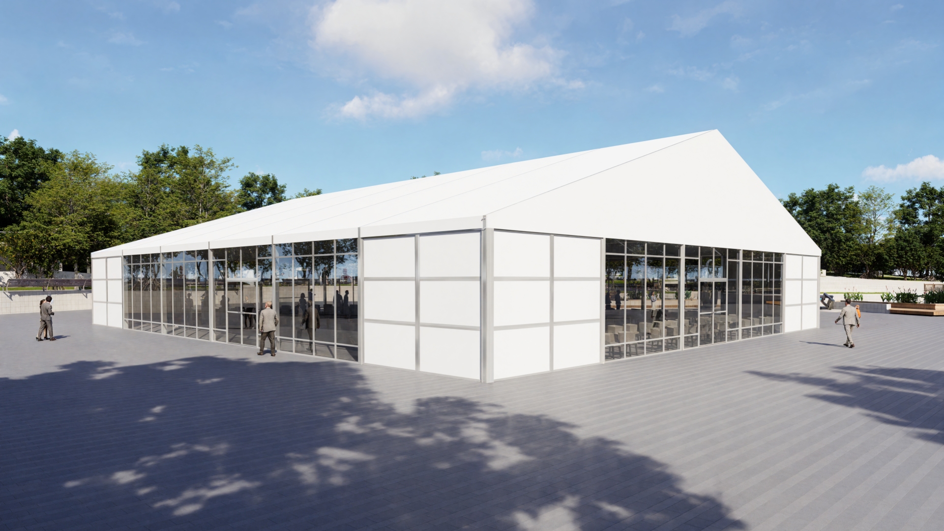 The big tent is a strong and flexible structure: clear span, unlimited in length and guarenteed by NPStructures quality standards. Different kinds of accessories equipped with the framework deliver different effects.