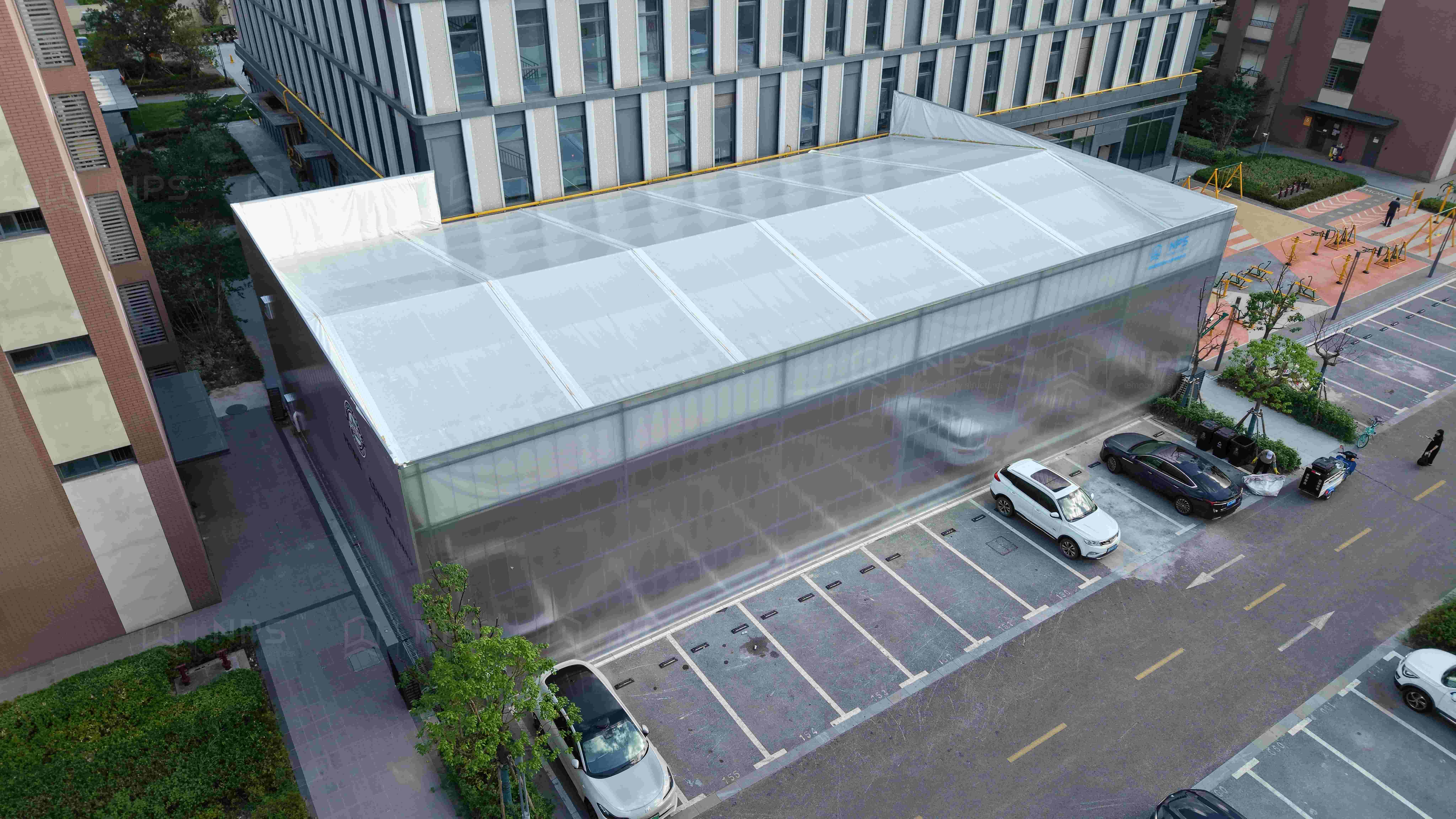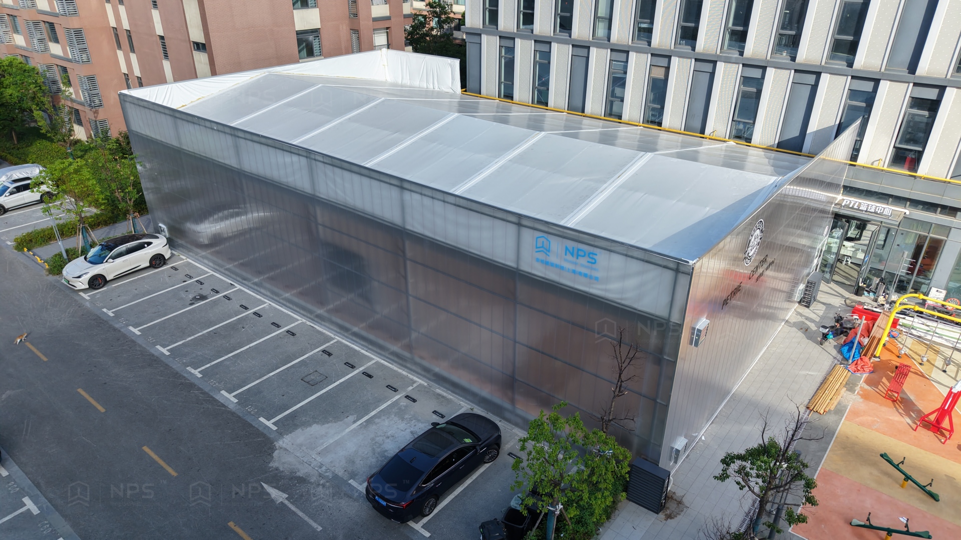 这座四周装配着半透明的PC阳光板,搭配NPS篷房高品质的定制铝合金框架结构,使得整座球馆新颖美观且大气。独特的外观及舒适的内部设置,吸引着远近诸多的体育爱好者们前去体验。参加体培训练的学生家长们更是对这座场馆爱不释手,家长们非常愿意将孩子们送到这样的环境中去学习篮球。经营者的用心同样也获得了家长们、运动爱好者们的信任,这是一场属于经营者和运动者们的双赢。