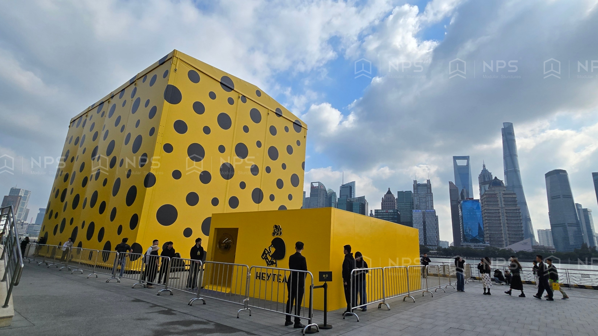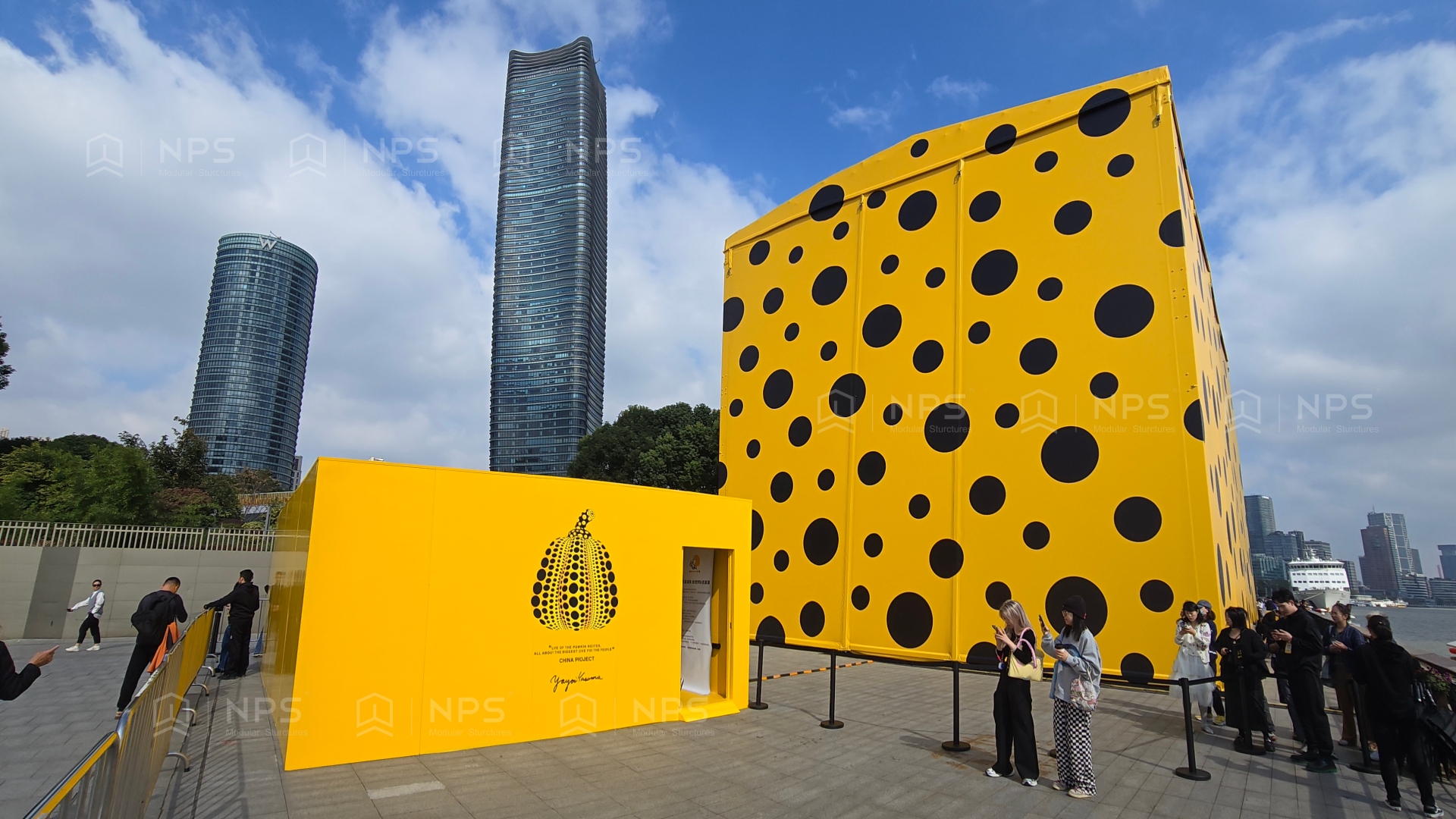 NPS奈柏此次为草间弥生大展定制展厅,采用13.5m超高篷房;该高度轻松容纳12m高的草间弥生南瓜雕塑,且在北外滩的江风中依然安全稳固。这个高度是目前国内最高的单层篷房,NPS奈柏的专业设计定制能力将客户的需求完美实现!