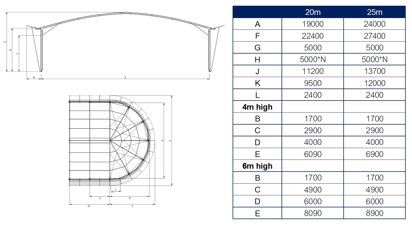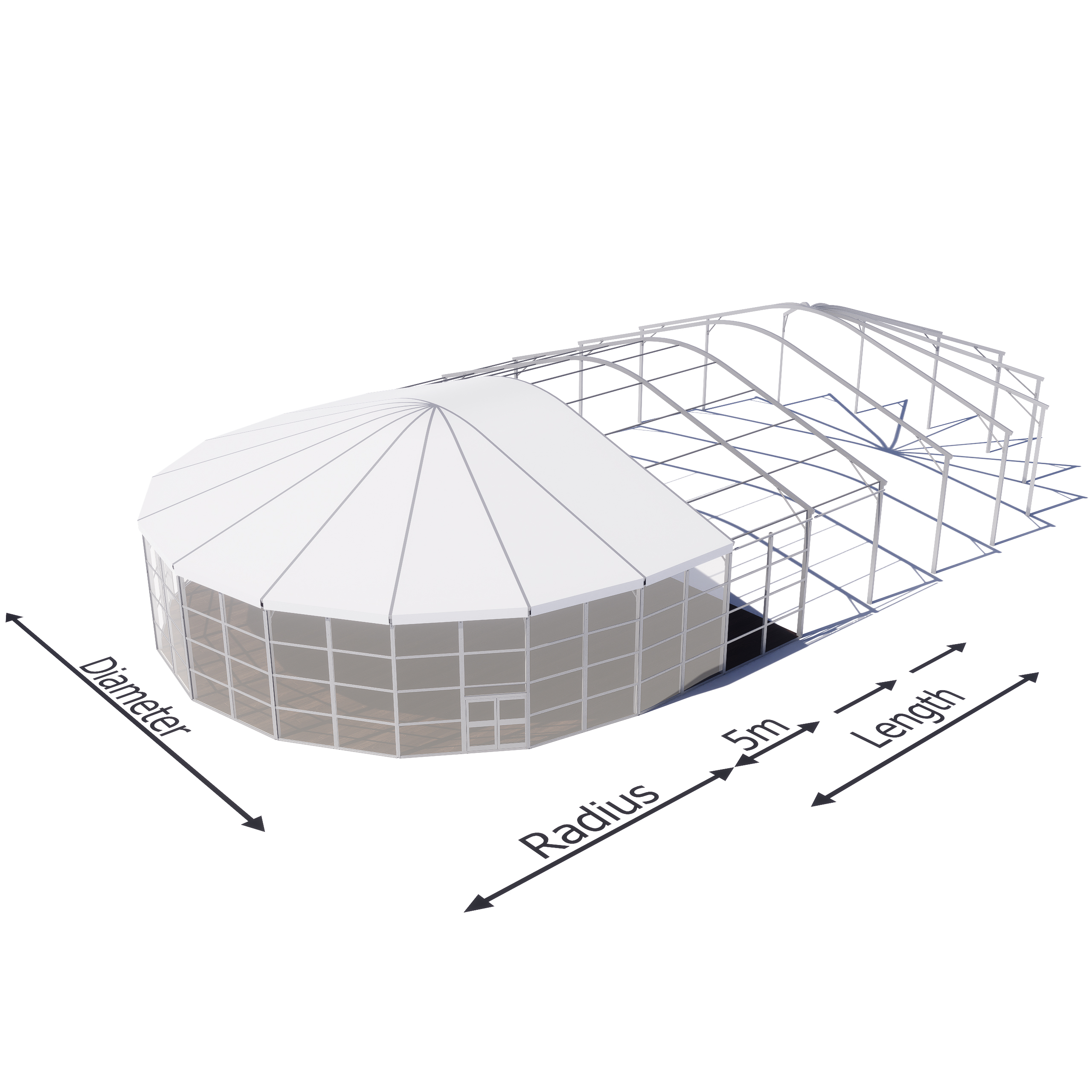 The Conveta Modular Structure of NPS Modular Structures is a stunning spacious glass hall that combines the features of a permanent building and a temporary structure. It’s convertible between an oval hall and a round one. The great flexibility of the structure offers many possibilities of usages and applications. Thanks to the flexible design of NPS, the structure can also be equipped with NPS advertising banner on the top to achieve the branding purpose. Now the Conveta is provided in two regular width of 20m and 25m clear span while it can be added a 20×5 unit to expand in length.