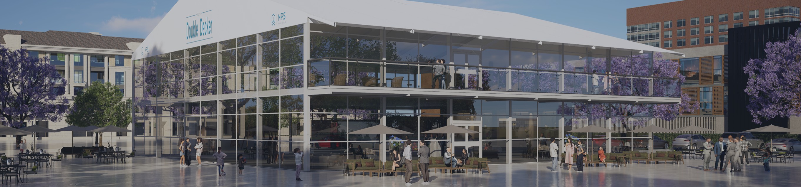 The Curved Double Decker of NPStructures is designed into three series with different styles. They are Dome Double Decker, Arcum Double Decker, and Half Curve Double Decker. The Dome Double Decker has a curved roof while the Arcum Double Decker has two 1m canopies on its both sides. Half Curve Double Decker is half of the curve. The Curve Tent with a side height higher than 8m can be made into a double decker with a Mezzanine added inside. It doubles the floor space you can make use of within limited site conditions. The Mezzanine is flexible to be U shaped, T shaped, half built, or fully built, fully changeable depending on your need. The flexibility provides you with incredible design freedom.