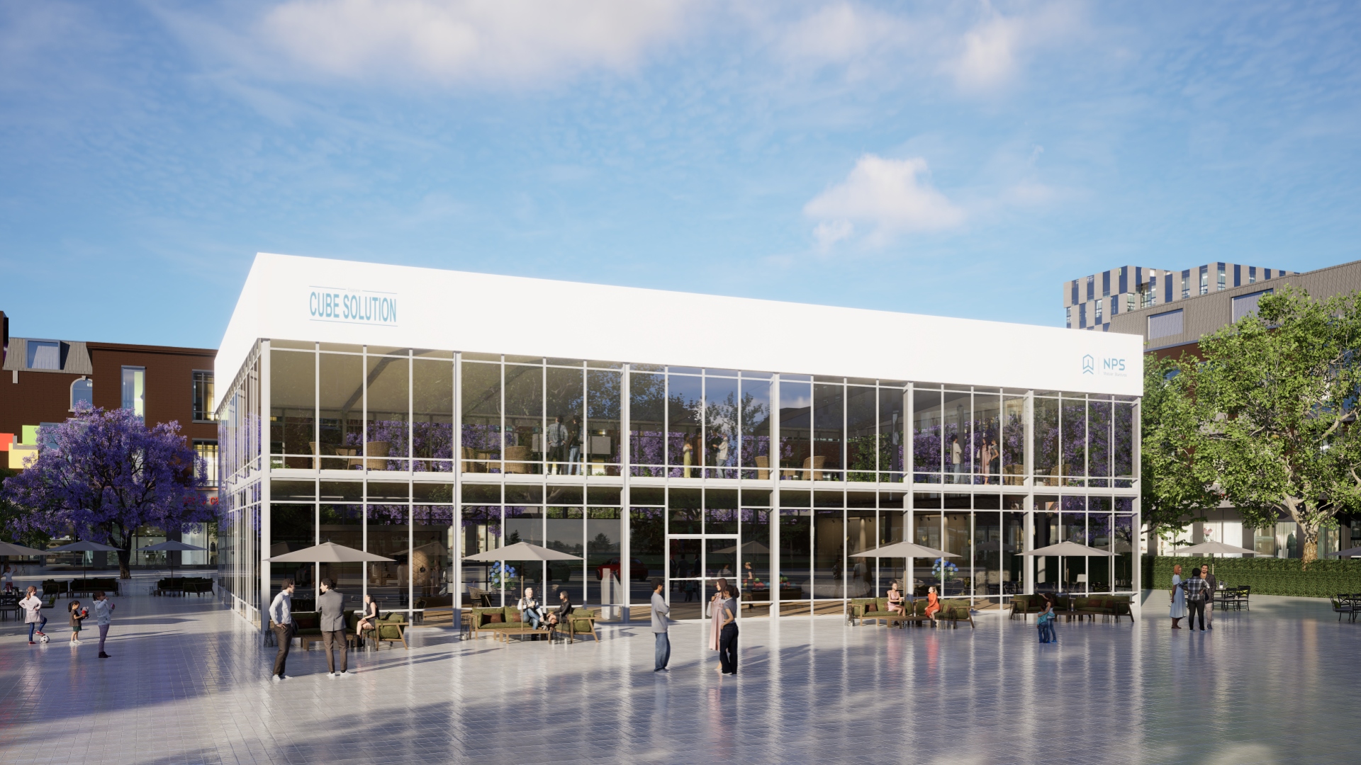 The NPS Flattop Double Decker is designed on the basis of Inflatcube. So it comes as standard with a thermo roof and a large advertising banner. Any Inflatcube with a side height higher than 8m can be built into a double decker with a mezzanine added inside. Thanks to the flexible design of NPS Modular Structures, the mezzanine is flexible to be built in T shape, U shape, half built or fully built. That meets the different floor space needs as VIP areas, hospitality areas, meeting rooms, and reception room etc. NPS accessories such as glass wall panels, insulated rigid wall panels, balconies and terraces, stairs and railings are all available.