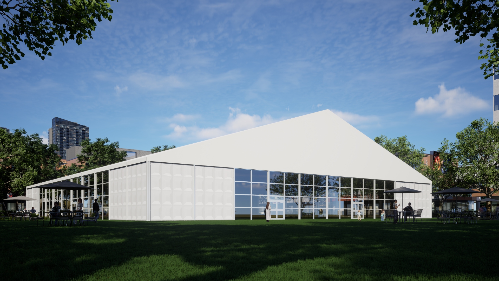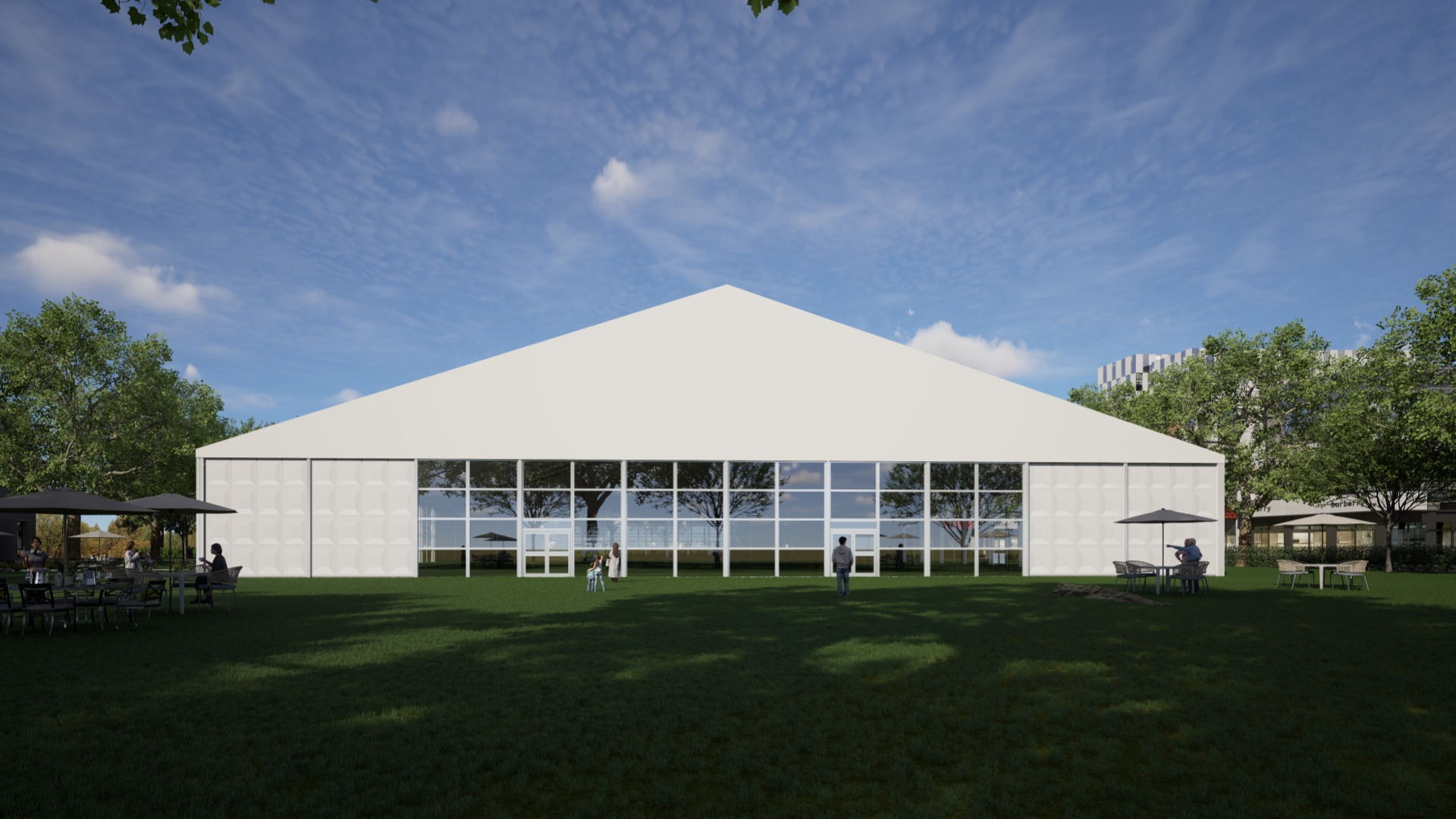 The Huge Tent still adopts the design of free span – no upright columns inside. That means the space can be divided freely into several functional areas such as reception area, dining area, conference room, negotiation room etc. as long as you like. Besides, partitioning panels are available together with branding walls.