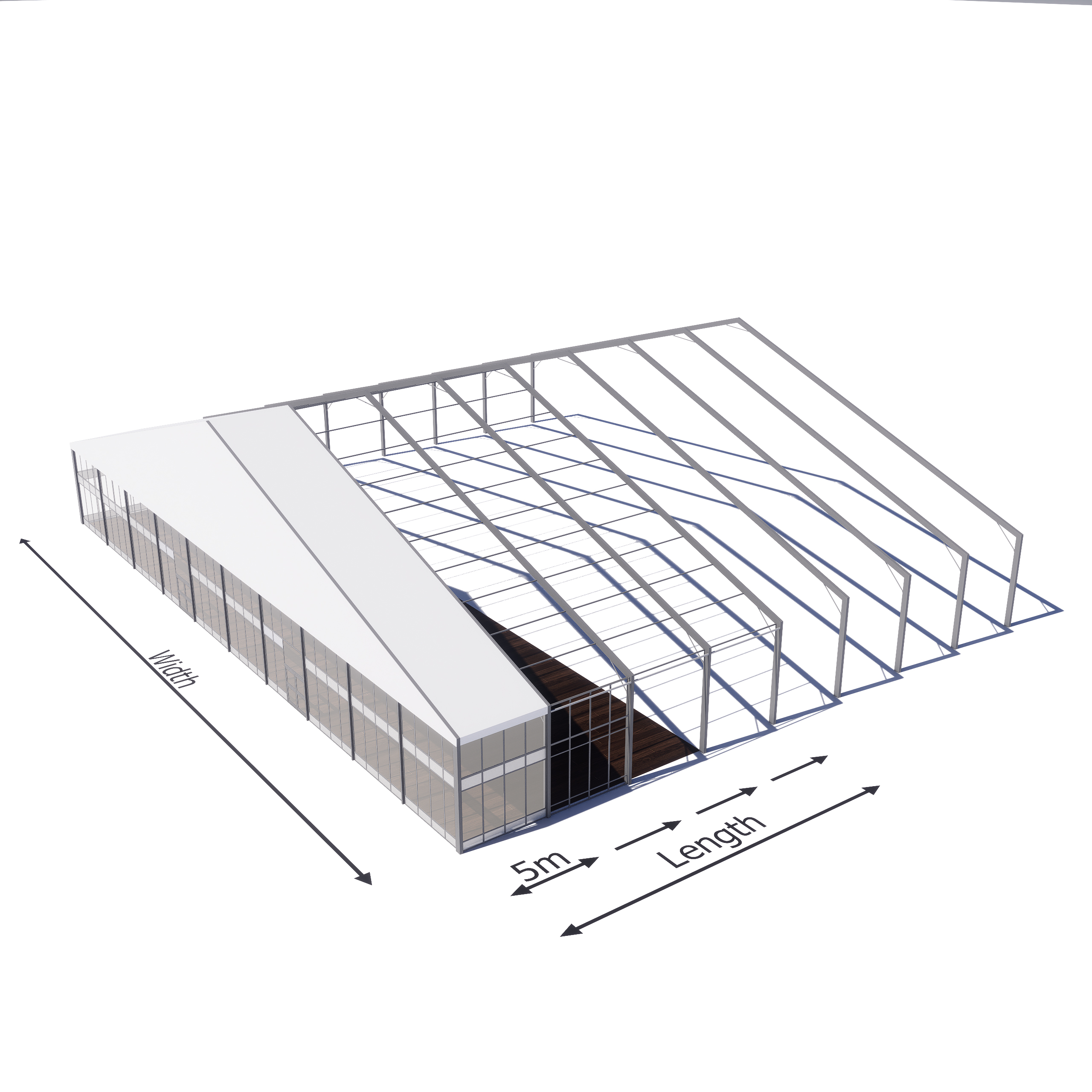 Huge Tent:A huge aluminum framework structure to provide a clear span up to 50m in width, unlimited in Length!